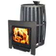 Дровяная банная печь-камин Березка Флагман 35 без особых трудностей наполнит влажным паром и жаром парилку объемом до 40 кубометров. Топка и корпус печи изготовлены из качественной конструкционной стали толщиной в термонагруженных местах до 10 мм. Печь оснащена навесным баком из нержавейки (поставляется вместе с печью), а дверца топливника имеет большой жаростойкий экран, который позволит любоваться живым огнем из комнаты отдыха. Также дверца оснащена надежным, герметичным механизмом запирания.