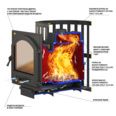 Чугунная печь для бани Везувий «Легенда Ковка» рассчитана на парные объемом от 6 до 14 м3. Топка каменки состоит из трех частей, изготовленных из литого высококачественного чугуна. Части соединены болтами, в стыки проложен керамический шнур, выдерживающий температуру до 1200°С, поэтому топка абсолютно герметична и безопасна при эксплуатации. Толщина элементов топки составляет минимум 12 мм, поэтому печь способна выдержать большие перепады температуры и не лопается при попадании большого количества воды.