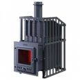 Печь для бани серии Гроза Ураган - расширенный комплект печи в сетке. Максимально приближенный вариант печи для режимов русской парной, имеющий непосредственно закрытую чугунным коробом каменку, дверцу для пара с ручкой из бука, увеличенную до 50см чугунную стартовую трубу.  Печь легко модернизируется до полноценной печи предназначенной для Русской бани путем замены стальной сетки на каменную облицовку без демонтажа дымохода. Модель Гроза Ураган выполнена на базе печей серии Гроза - экономичная модель для частного применения. Основной принцип работы печи сохранён – получение пара с теплоёмкой каменки прямого нагрева. Каменка является сводом топки, нагревается с нижней поверхности снабженной теплосъемными шипами для увеличения контакта с пламенем.Банная печь Гроза 18М Ураган с максимальным объемом парной 18 м3 и диаметром дымохода 115 мм можно купить в интернет-магазине Печи-Онлайн в Анапе с доставкой по всей России. Чтобы оформить заказ по выгодной цене 94300 руб. с гарантией оставьте заявку или позвоните нам по телефону 8 (800) 505-21-32 . Стоимость монтажа уточняйте у менеджера.