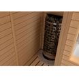 • Вертикальное размещение камней позволяет менять характер тепла в зависимости от подачи воды: сверху для интенсивного горячего парения и сбоку для мягкого и легкого пара.