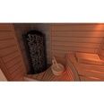 • Полукруглая форма печи и угловое расположение по максимуму экономят пространство в парилке.