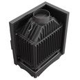 В распашную угловую дверцу справа вставлено Г-образное стекло из жаропрочной стеклокерамики, которое увеличивает обзор на игру пламени из-за отсутствия чугунной стойки. Каминная топка предназначена для установки в колонну, во внешний выступ перегородки или на специальный подиум.