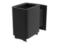 Встроенный теплообменник обеспечивает быстрое нагревание воды для мытья. На дымовом коллекторе имеется специальное отверстие (с крышкой) для очистки трубы и внутренних поверхностей топки от сажи. Съемная декоративная рамка позволяет скрыть зазоры в стене помещения и разнообразить интерьер. Вентилируемая каменка обеспечивает быстрый прогрев камней и стабильную подачу пара в зону парения.