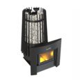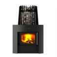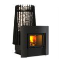 Закрытая каменка вмещает 30 кг банного камня, открытая - 75 кг. Дверца топки оснащена жаростойким стеклом Schott Robax, через которое можно наблюдать за процессом горения.