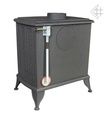 Печь изготовлена из серого чугуна с толщиной стенок 7мм. Чугун обладает высокой теплопроводностью, буржуйка начинает отдавать тепло в помещение сразу после затопки. Мощности печи 9 кВт достаточно для отопления загородного дома площадью до 90 м2. Печь имеет герметичную топку и работает в режиме длительного горения с КПД 75%. Благодаря встроенному термостату (регулятор тяги) печь работает в режиме заданной температуры.