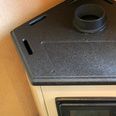 Сложная система воздушного потока позволяет использовать печь в режиме тления и длительного горения. Регулировка подачи воздуха осуществляется за счет заслонки на дверцах зольного ящика. Топка каминной печи оснащена пламягасителем из вермикулита. Верхняя чугунная поверхность служит для нагрева воды или подогрева пищи.