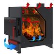 16. Наружные теплоотдающие поверхности печи, включая дверцу, охвачены кожухом-конвектором, который экранирует пожароопасное инфракрасное излучение, исходящее от них, в результате чего, создаются конвекционные потоки, динамично прогревающие отапливаемое помещение.