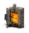 • Быстрый нагрев за счет вертикальной конструкции закладки: между камнями и стенками топки существует специальный зазор для конвекции воздуха. Такое решение экранирует жесткое инфракрасное излучение от раскаленных стенок топки, нагревая тем самым большое количество камней, и создает «мягкое» тепло в парилке;