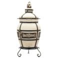 Тандыр "Гектор" представляет собой бочонок среднего объема, выполненный в виде округлой формы. Он оснащен двухуровневыми крышками - колпачком и крышкой. Колпачок удобно выполнен, что позволяет сохранять тепло при открывании тандыра. Крышка с удобными ручками облегчает открывание и закладывание продуктов для приготовления. Кованная подставка-ножки обеспечивает удобное использование тандыра. Декоративный орнамент, расположенный в центральной части тандыра, придает ему особую красоту. Глиняный тандыр имеет бежевый цвет с добавлением коричневого оттенка в области узора. Глазурь, нанесенная на орнамент, защищает его от влажности и загрязнений. Изготовленный из шамотной глины высокой температуры обжига, тандыр обладает высокой теплопроводностью, экологичностью, прочностью и долговечностью на протяжении более 10 лет.